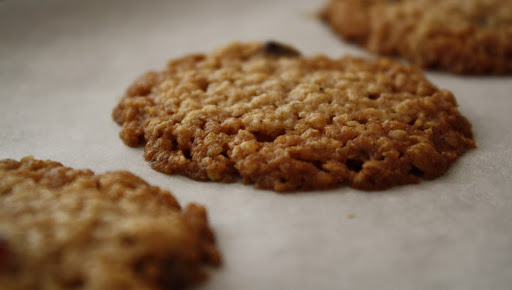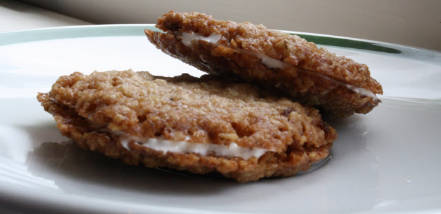 9. Once the cream and the oatmeal crisps are cool, sandwich a teaspoon of cream in between two crisps.