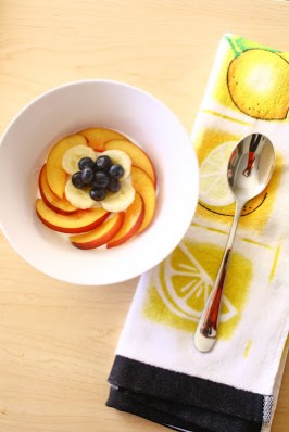 The first–greek yogurt with sliced fresh fruit–will work with whatever produce you have on hand, no kitchen appliances required. For extra sweetness, mix in a bit of almond butter or jam.