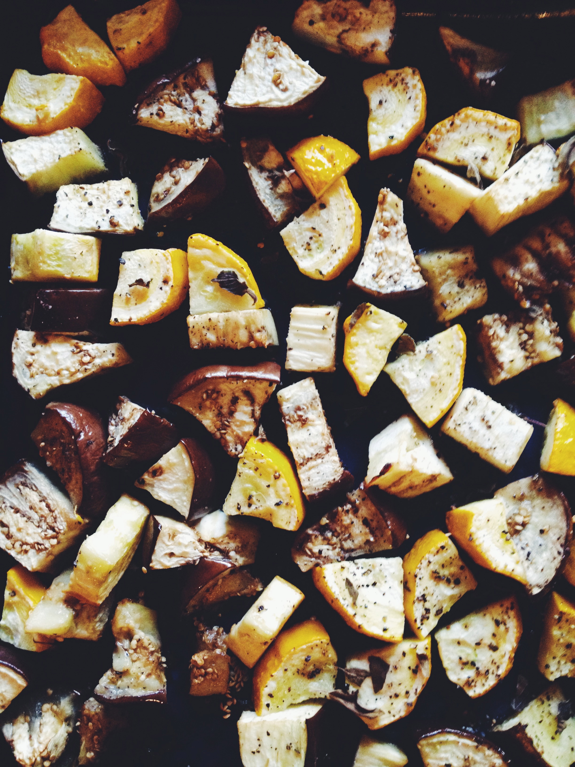 Handful of diced, sautéed vegetables of your choice (I used eggplant, red bell pepper, and zucchini)