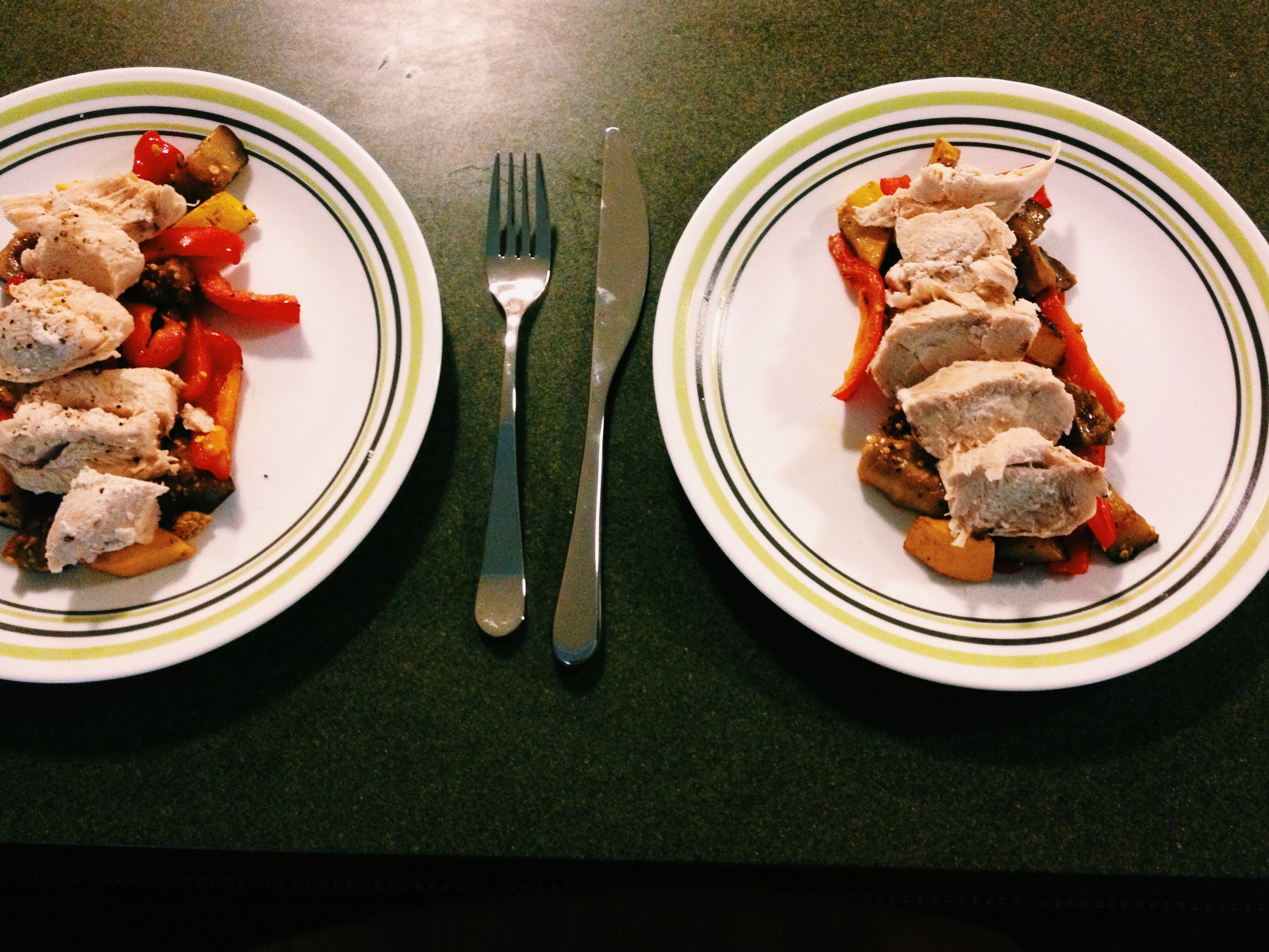 For the filling, I recycled veggies from a stir-fry I made the night before. Transforming leftovers is a fundamental skill in college cooking, because you maximize the amount of time you spend in the kitchen and never waste precious produce.